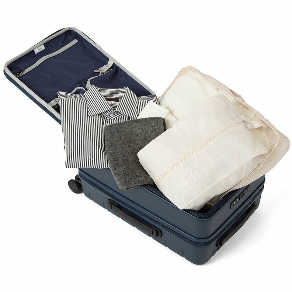 1気室に荷物をパッキングできるので、空港やホテルの狭いスペースでも簡単に荷物の出し入れが可能。