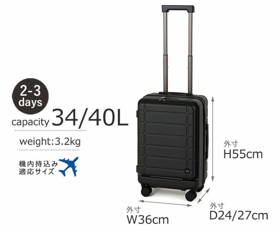 ●キャビンサイズ/S:2-3日の旅行向け。国際線、国内線100席以上の航空機に対応。※拡張時不可