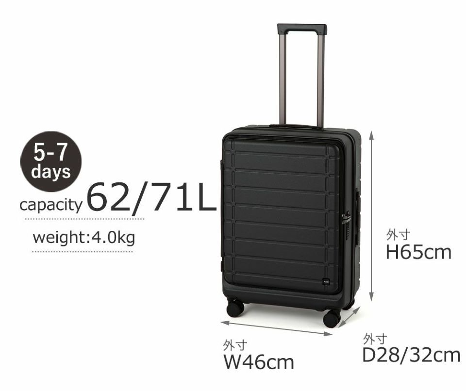 トレンド感のあるフロントオープンポケットを全型に搭載したスーツケースシリーズ。