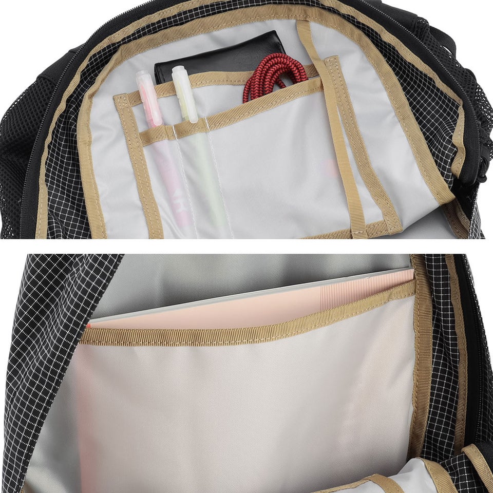 背面パネルとショルダーベルトには通気性の良いメッシュ素材を使用。クッション性も備えているため、長時間背負っても肩への負担を軽減し、快適な使用感が続きます。