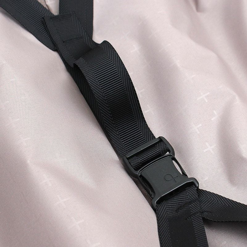 水より比重が軽いポリプロピレン樹脂を使用し、機内持込サイズで2.1kgの軽さを実現。ボディ表面に凹凸を設けたリブデザインを三軸方向に張り巡らすことで強度を確保し、軽さと耐久性を両立させています。