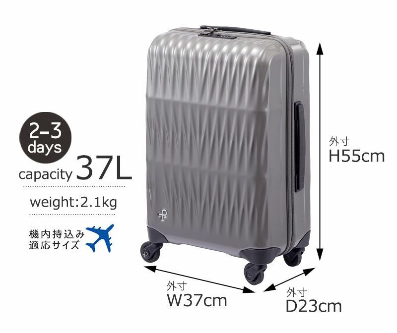 外寸(車輪含む):H55cm×W37cm×D23cm