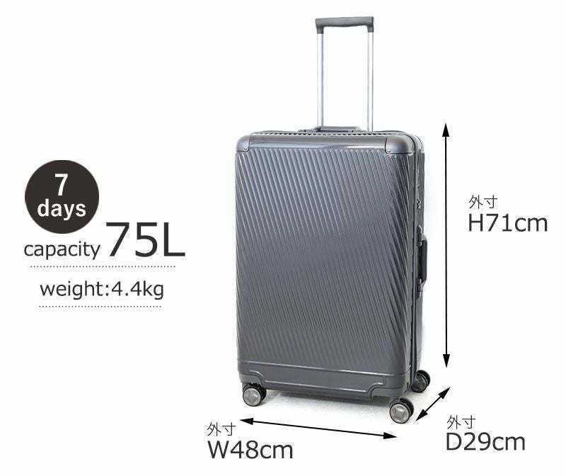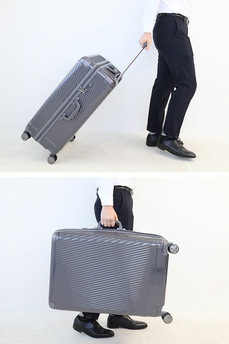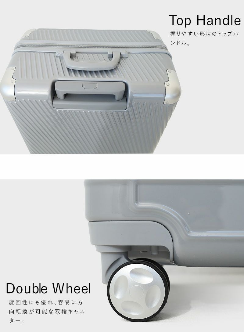 1週間程度の旅行向けで走行性に優れた双輪キャスターを備えたジッパータイプのスーツケースです。・1週間程度の旅行向けサイズ