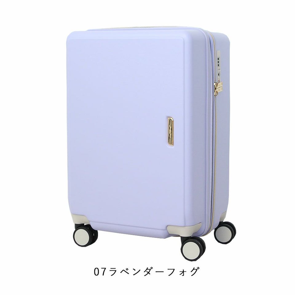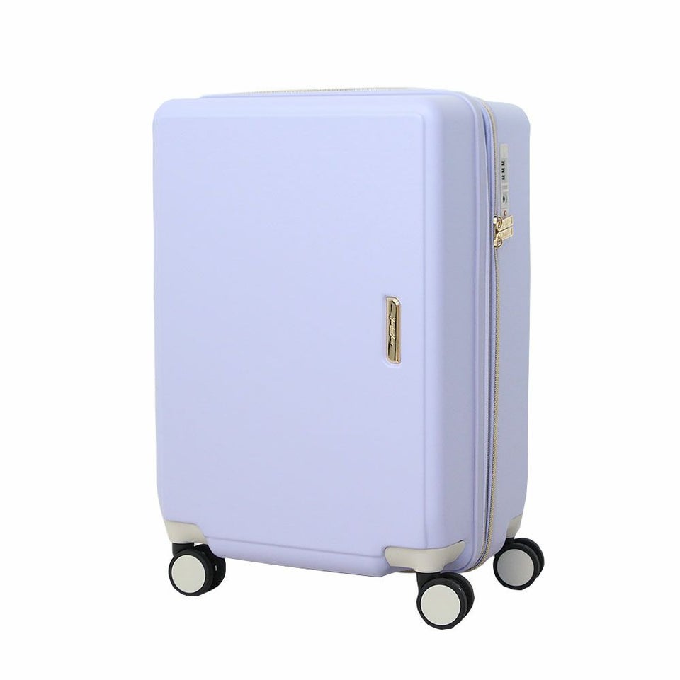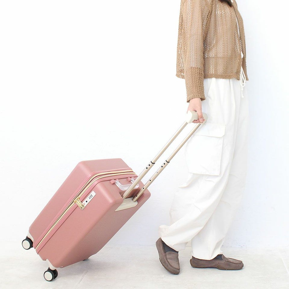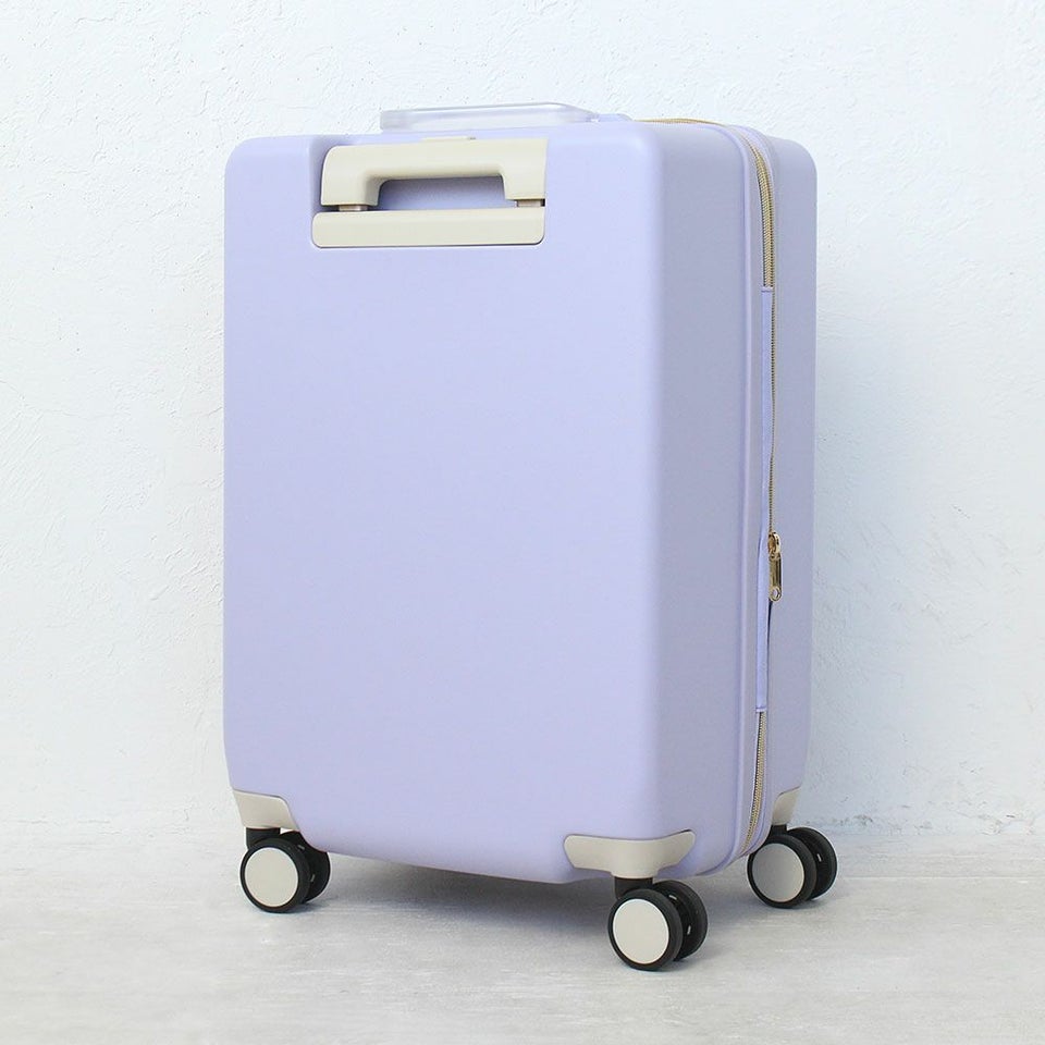 お洒落なニュアンスカラーの本体とクリアハンドルで抜け感のあるデザインに仕上げたスーツケース。