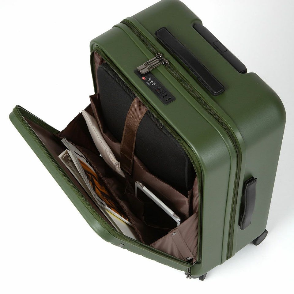旅行や出張に欠かせない機能が満載です。ボディシェルは、傷が目立ちにくいマットな質感にアース調のカラーをマッチ。
