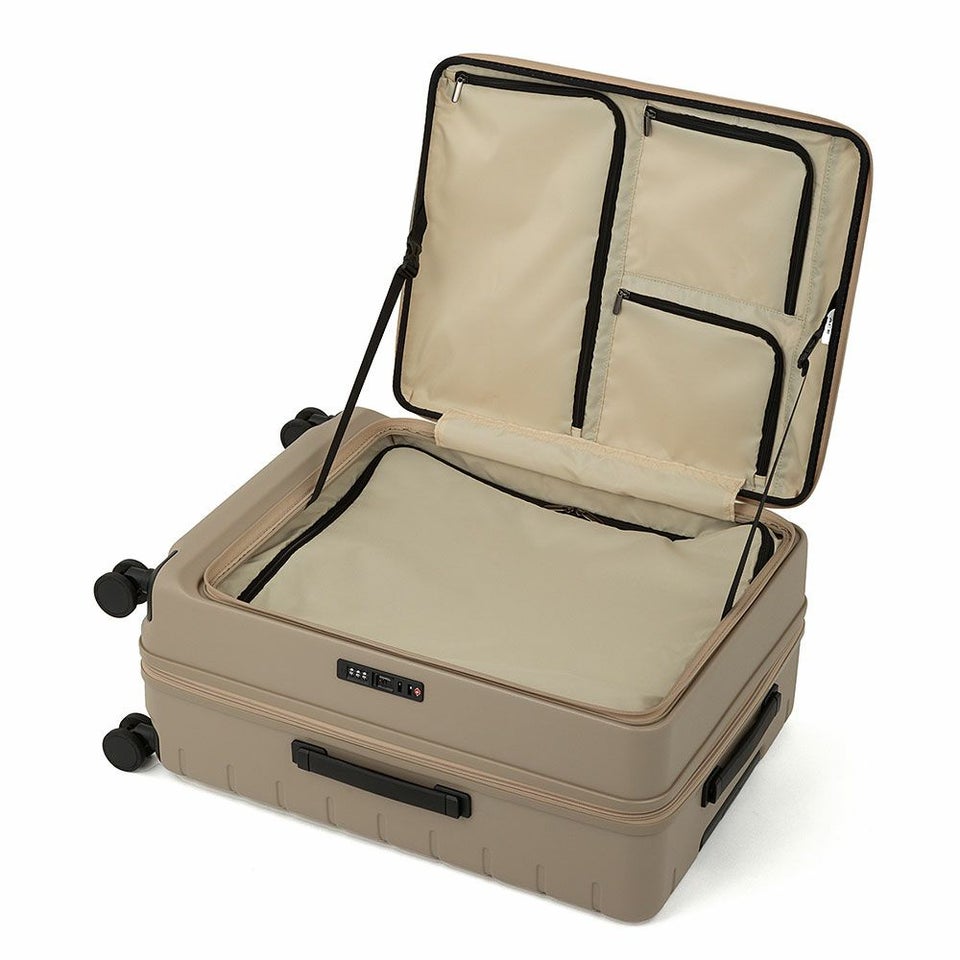 トレンド感のあるフロントオープンポケットを全型に搭載したスーツケースシリーズ。