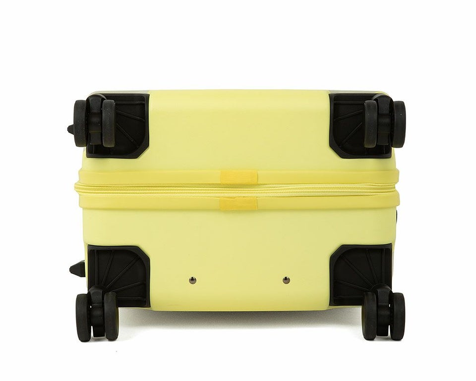 スクエアのシルエットとブライトカラーが目を引くおしゃれなスーツケースシリーズ。