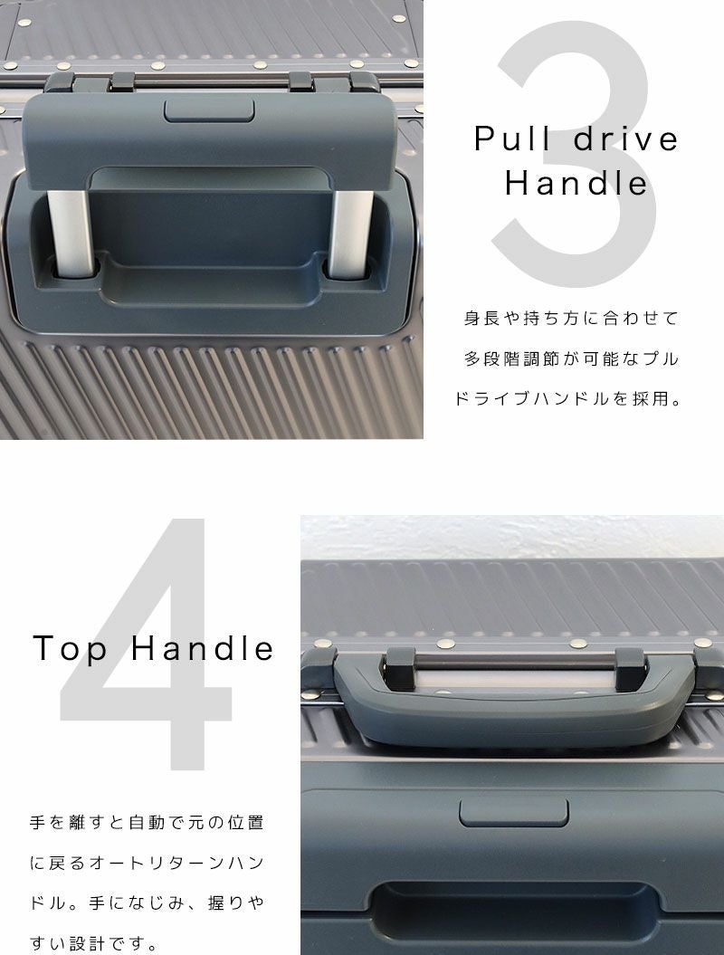 ※アルミニウム素材の特性上、傷やボディシェルの凹みが付きやすい製品ですが、耐久性には問題ございませんのでご安心ください。また、傷や凹みもスーツケースの味としてお楽しみいただける商品となりますので、ご理解いただけますと幸いです。
