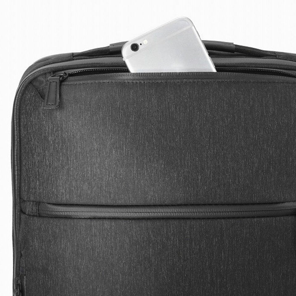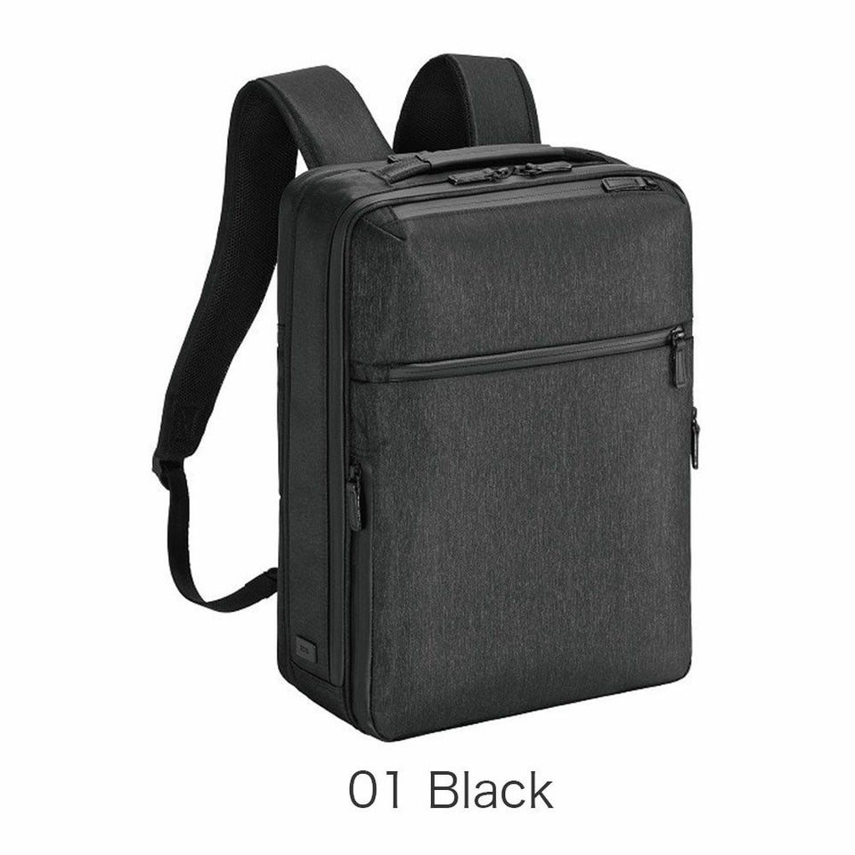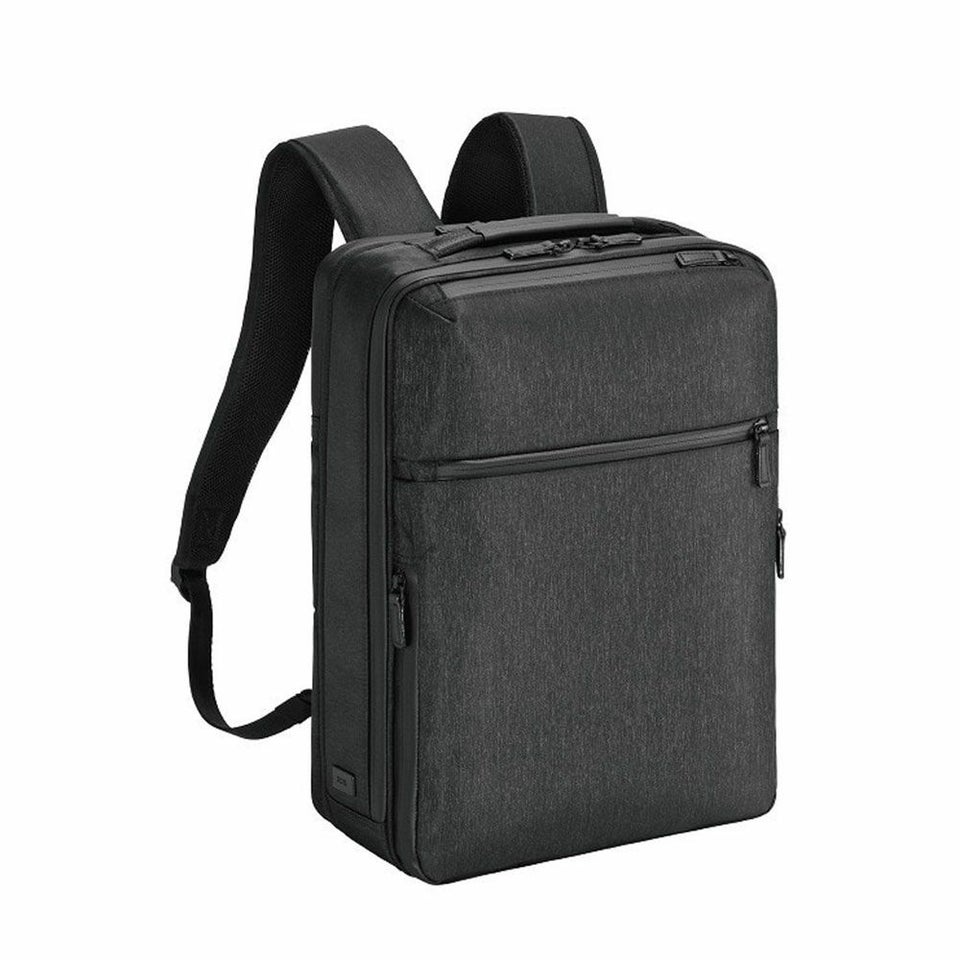 異なる糸を織り交ぜた杢調素材に、撥水性と高機能をプラス。14インチPC対応・A4書類収納OKで、通勤スタイルをより美しくアップデートします。