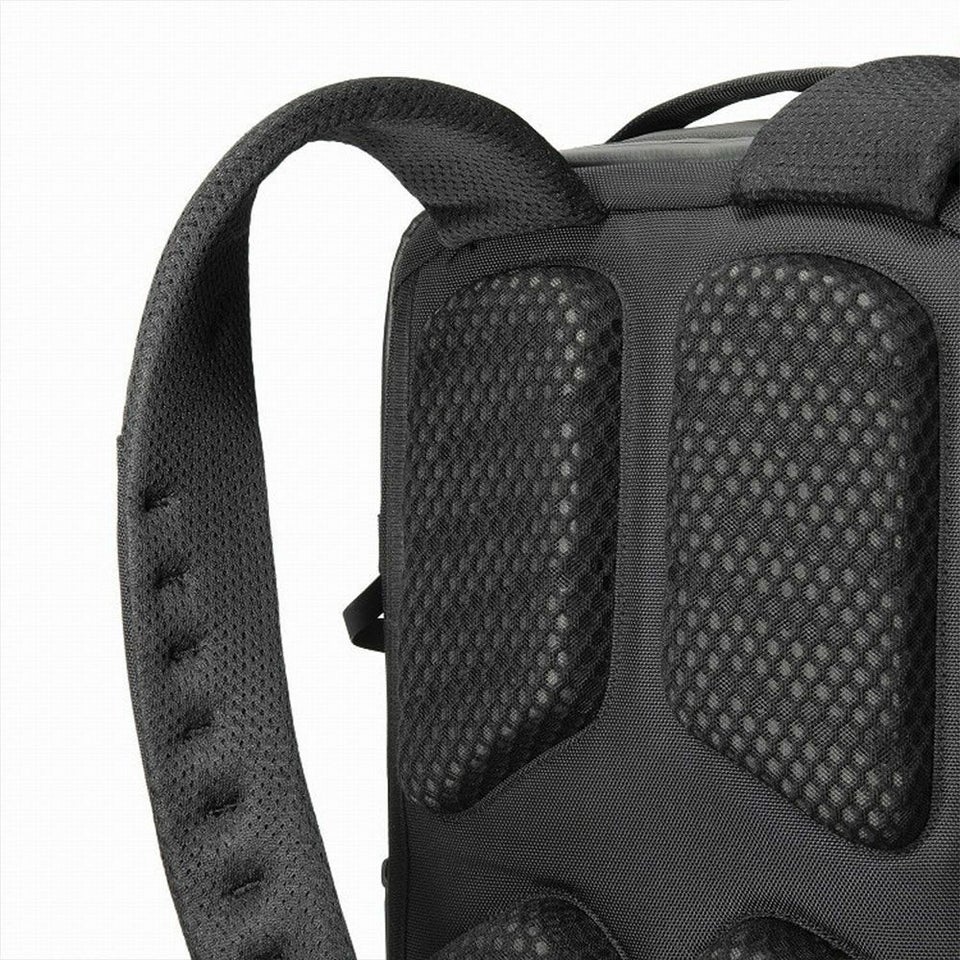 ショルダーハーネスに通気口を設け、背面には凹凸を持たせた構造で、夏場でも蒸れを軽減。長時間の背負い心地も快適に保ちます。