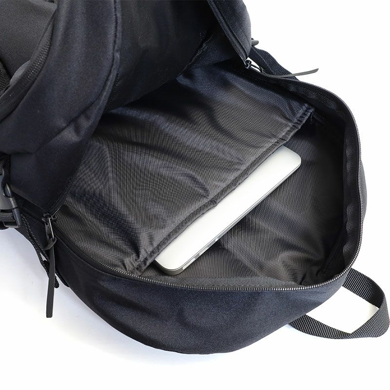ブランドロゴをシンプルにあしらったベーシックなバックパック。たっぷり収納でもすっきりとしたシルエットでスマートに。