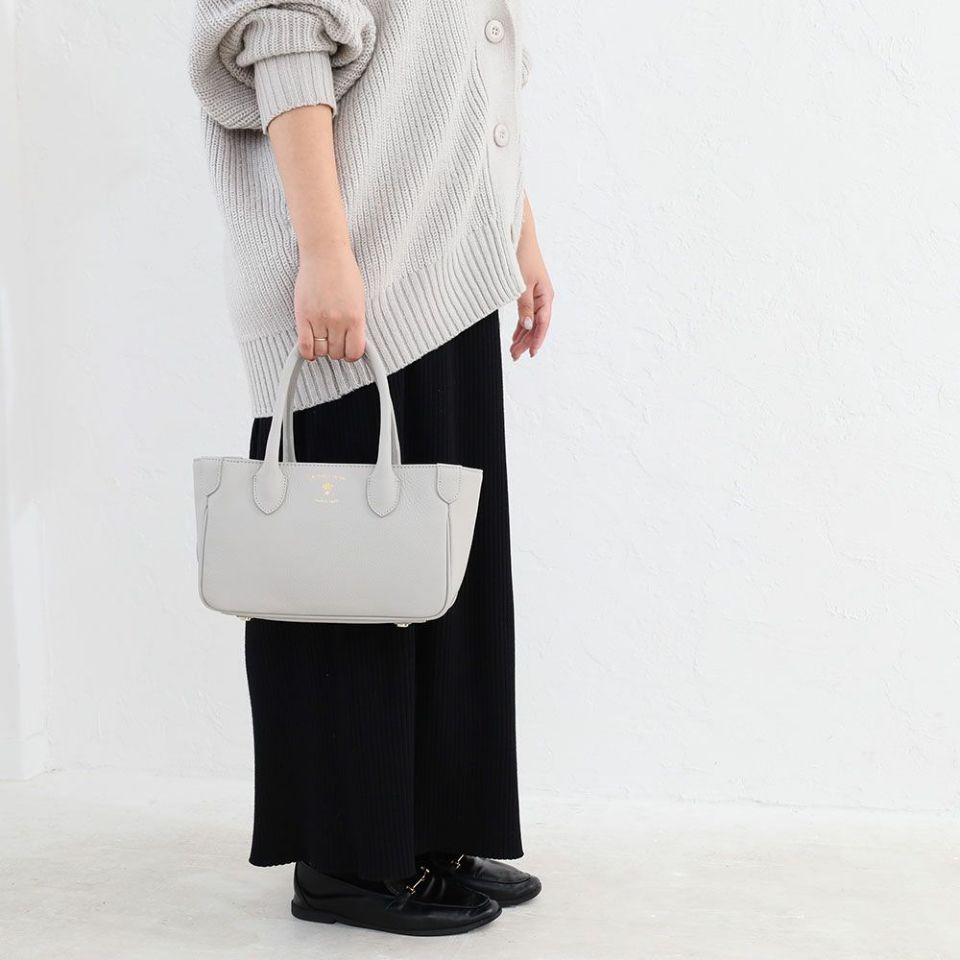 ミニマルでありつつもマチがしっかりあるので、ロングウォレットやお化粧ポーチもスッと入ってくれる、機能性も◎!