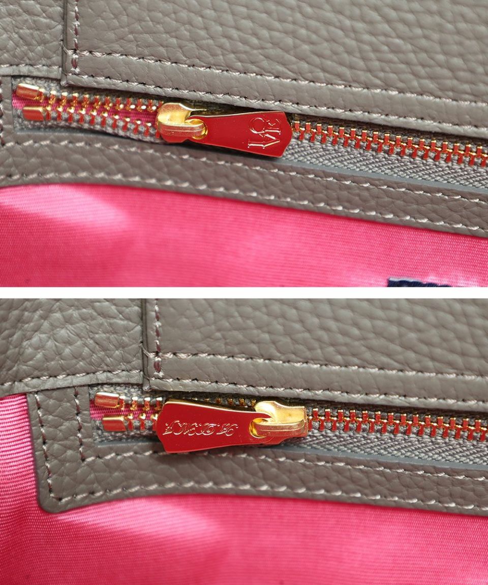 内ポケットのファスナー持ち手には裏表それぞれに異なるデザインが施されています。