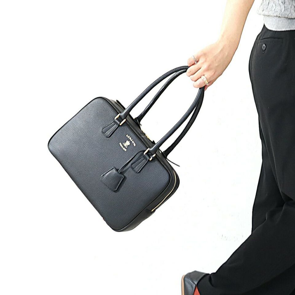 すっきりと持てるマチの薄いボストンは、肩掛けできるのが嬉しいポイント。