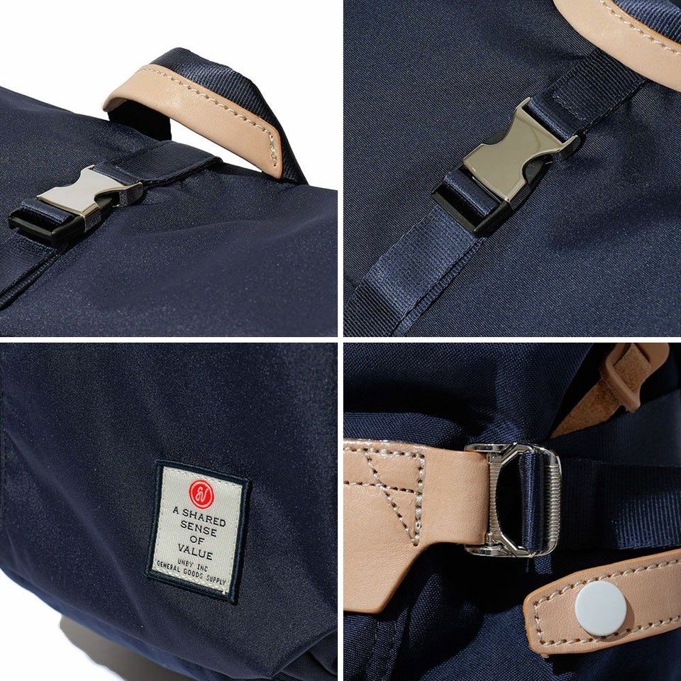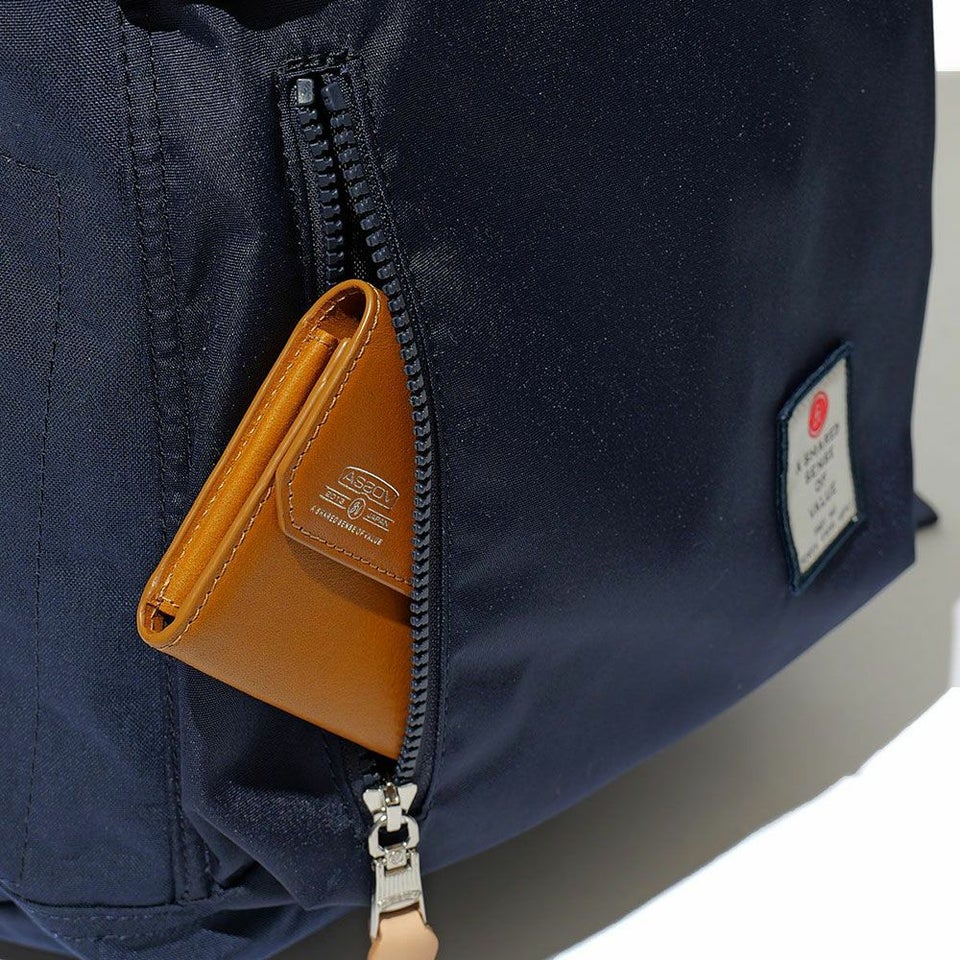ワッペン風に仕上げた織りネーム、ファスナーにはAS2OVオリジナル引き手、レザーパーツとホックのポイントなどカジュアルでユニセックスなシリーズです。