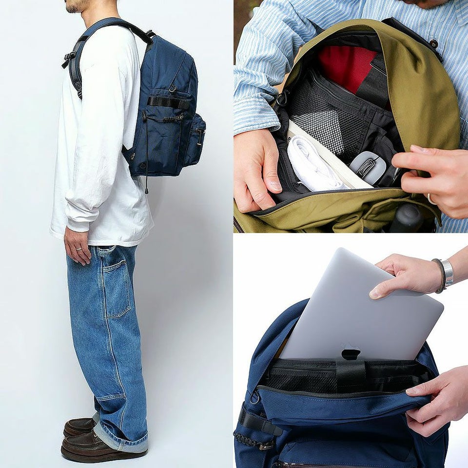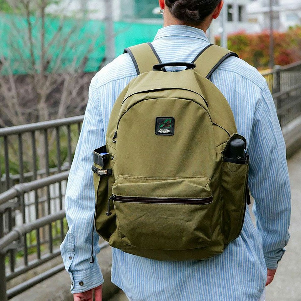 AS2OV シンプルな見た目とは裏腹に大小13個のポケットを備えた機能性と、防水性の高いオリジナルファブリックがポイント バックパック