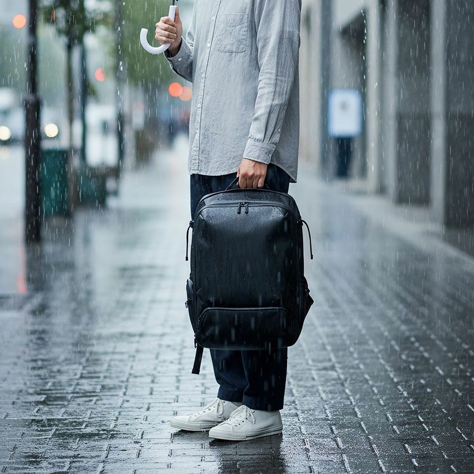 軽量でありながら耐水性と耐久性に優れたオリジナルファブリックを採用。タフな使用にも耐え、急な雨や移動の多い日でも安心。通勤から旅行まで、日常使いに心強い素材構成です。