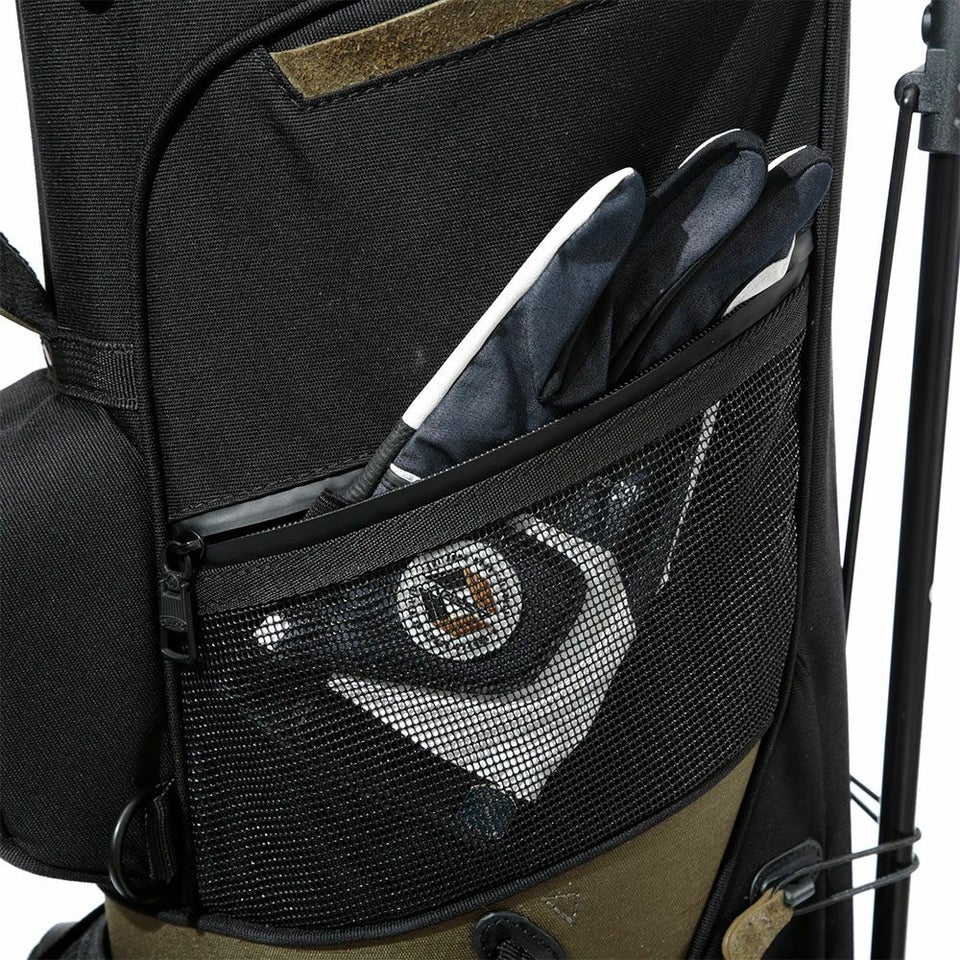 外部にはマグネットで開けるボールポケット、ティーやマーカーのポケット、グローブ用のメッシュポケット、カードポケットなどがあり、アウトドアバッグのようなアウターポケットも装備されています。
