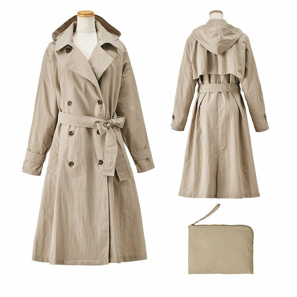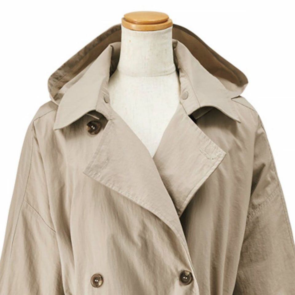 フードは取り外し可能。きちんと感を出したい日も、雨対策を優先したい日も、シーンに合わせてスタイルを変えられます。