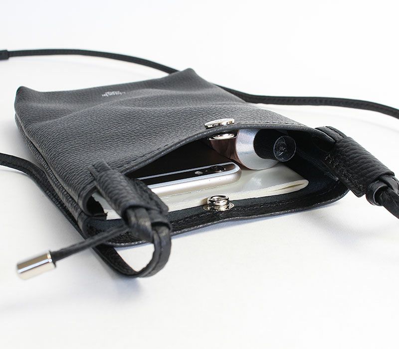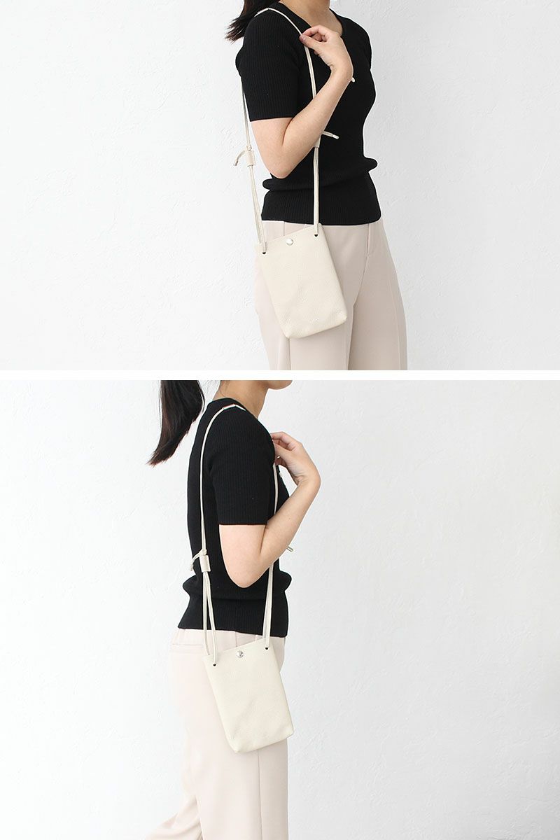 2.5cmのマチが付いているので、スマホと財布や小物も入ります。※長財布は入りません。