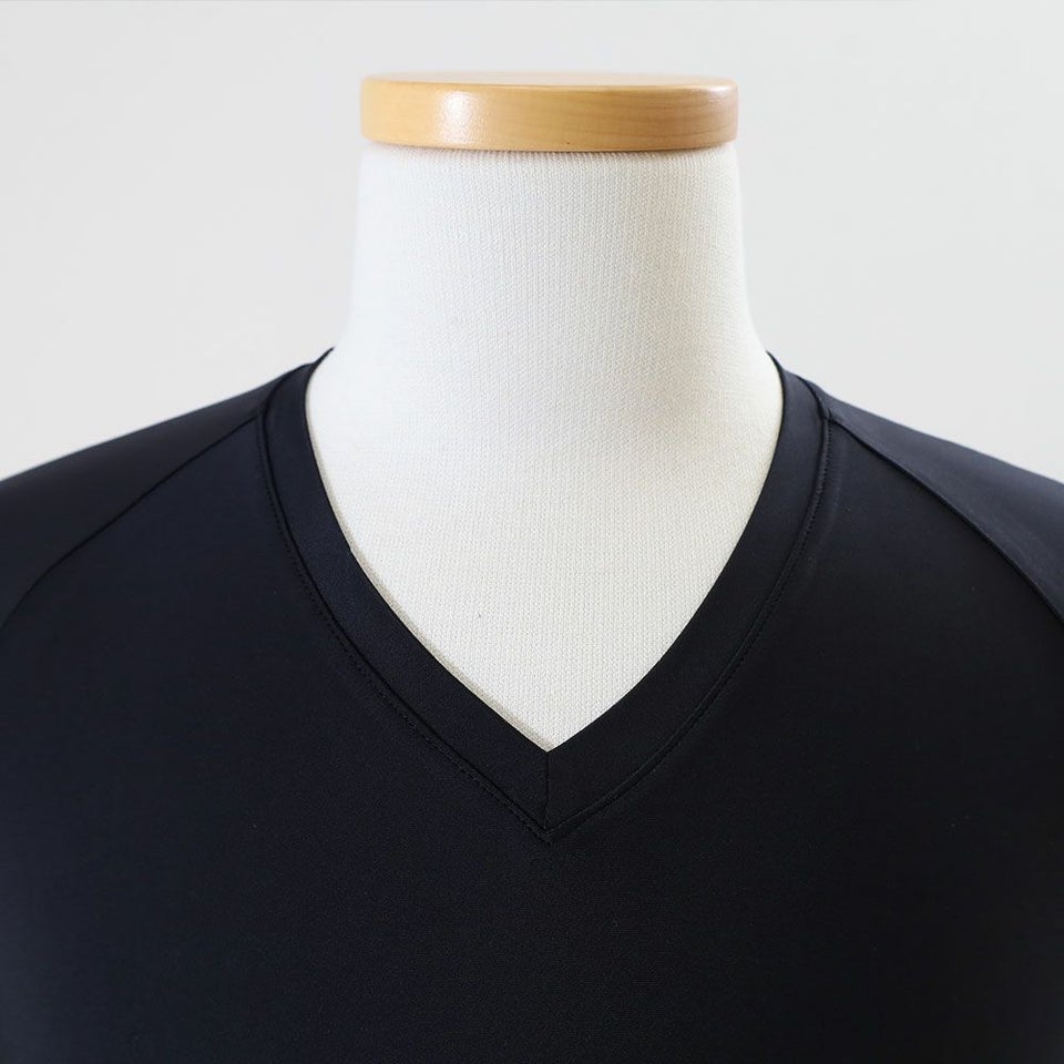ポロシャツやTシャツと重ね着しやすいVネック仕様。見えにくいインナーとして活躍します。