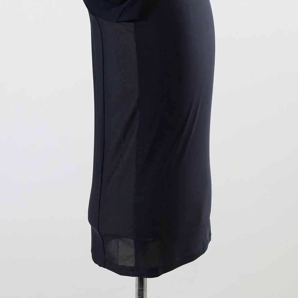 両サイドの身頃には通気性に優れたメッシュ素材を配置し、熱がこもりにくい工夫が施されています。また肩回りの動きを妨げにくいラグランスリーブを採用し、ゴルフやアウトドアなどアクティブなシーンにもぴったり。