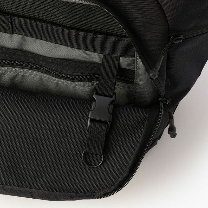 ・マチを広めにとったメイン収納部にには仕切りを設けず、内ポケットのみの構造に、フロントのアウトポケットは多彩な仕切りポケットに着脱式のキーホルダーを完備するなど、嵩張るものから小物類までまとめて収納することを想定した、使い勝手の良さを追求。・背面をスーツケースのバーに通して固定することが可能。