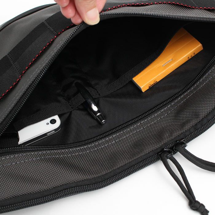 前胴にジッパーポケット、内側にもオーガナイズポケットが搭載されており、スリムな作りながら、収納力もあり使い勝手の良い仕様となっています。