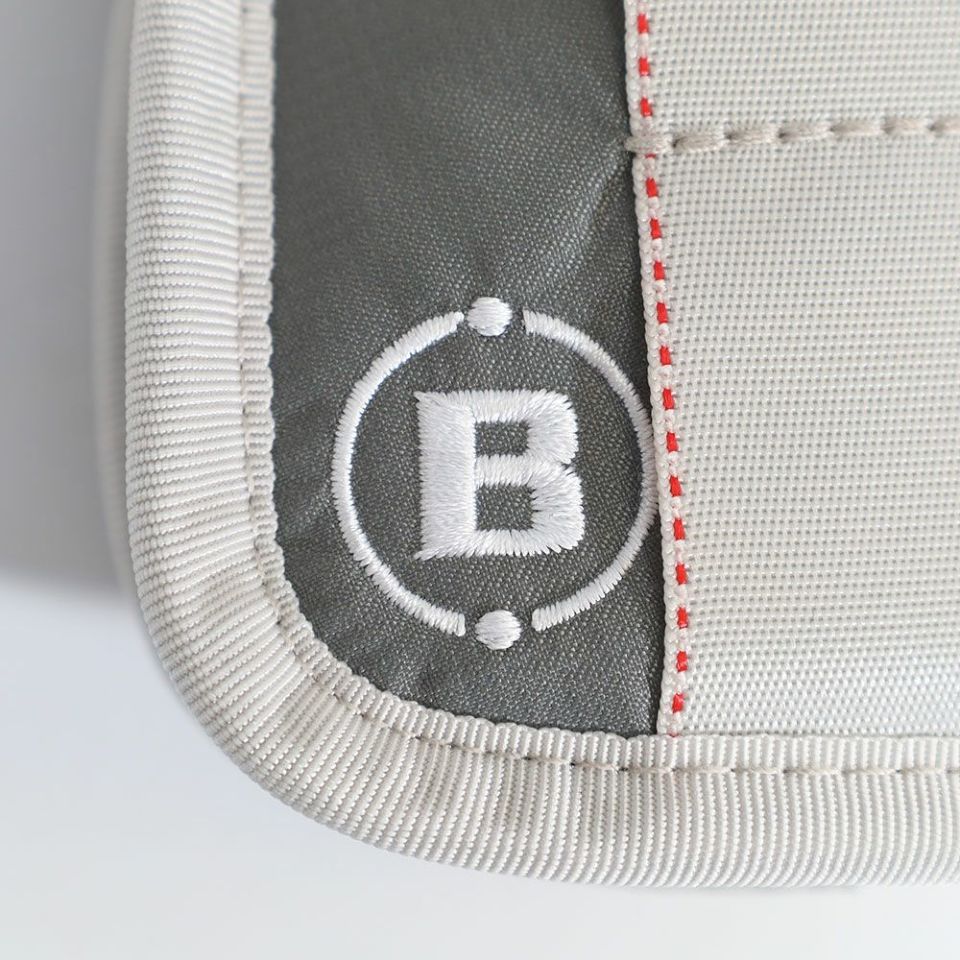 凹凸感のある織柄と撥水加工を施したオリジナルナイロン素材。保護性と軽さも兼ね備えた優秀素材です。