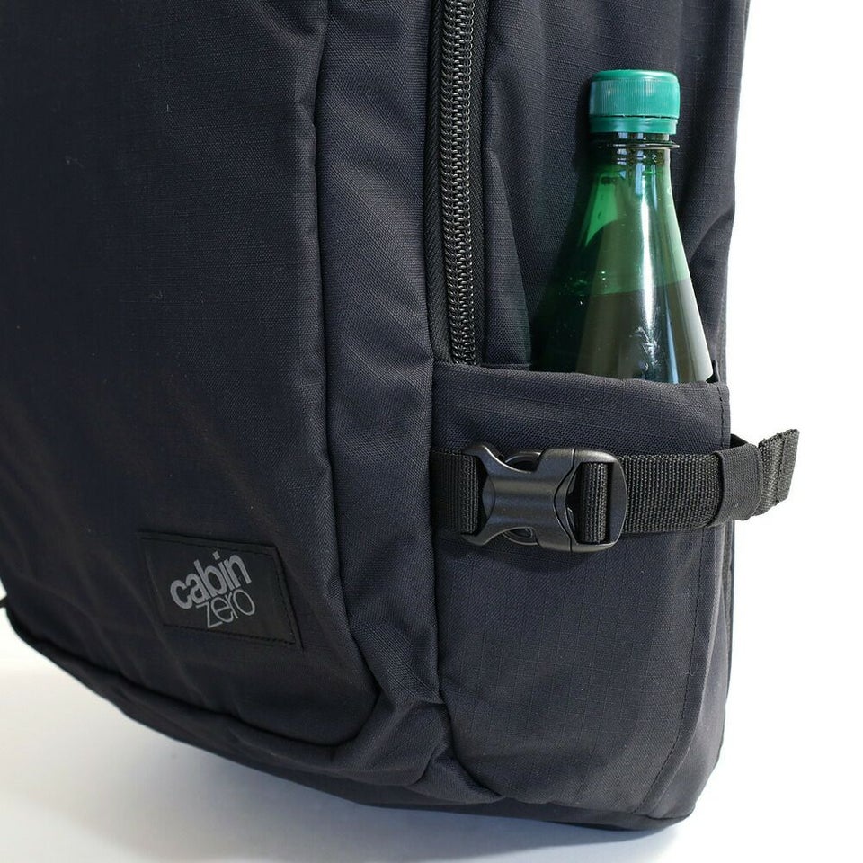 左サイドにはペットボトルが収納可能なポケット付き。