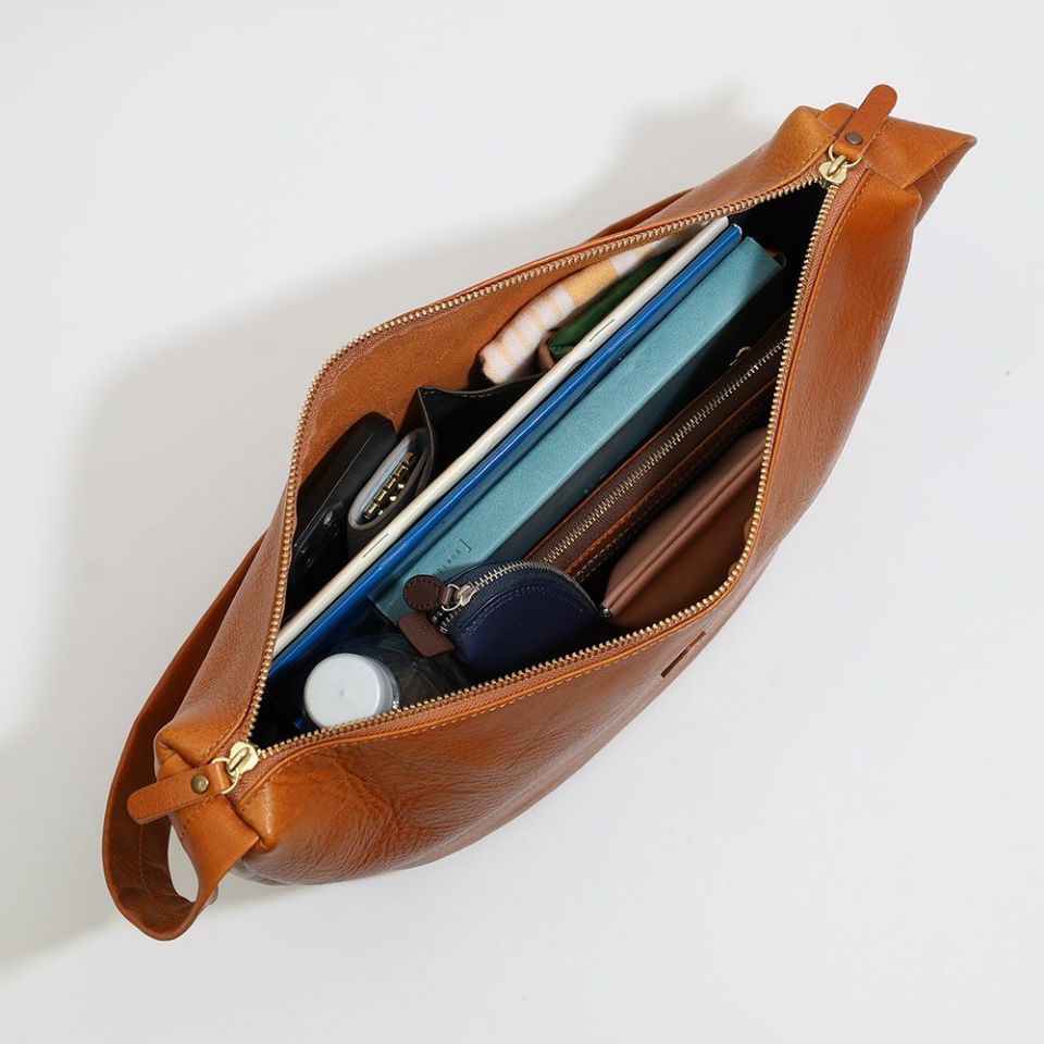 マチをしっかり取った設計で、長財布やポーチもすっきり収納可能。内側には小物整理に便利なポケット付きで、デイリー使いにうれしい機能性を備えています。