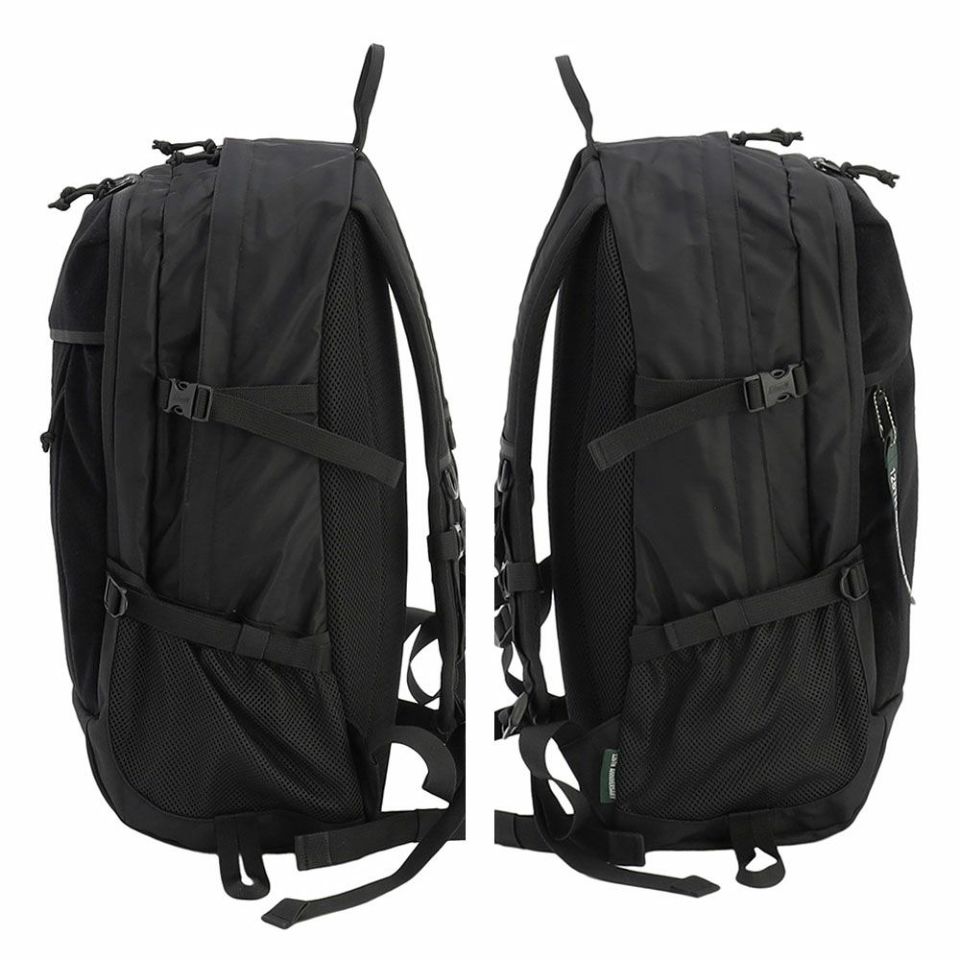 2つのフロントポケットに加え、両サイドには500mlボトル対応のメッシュポケット。フロントポケットには便利なエラスティックコード付き。