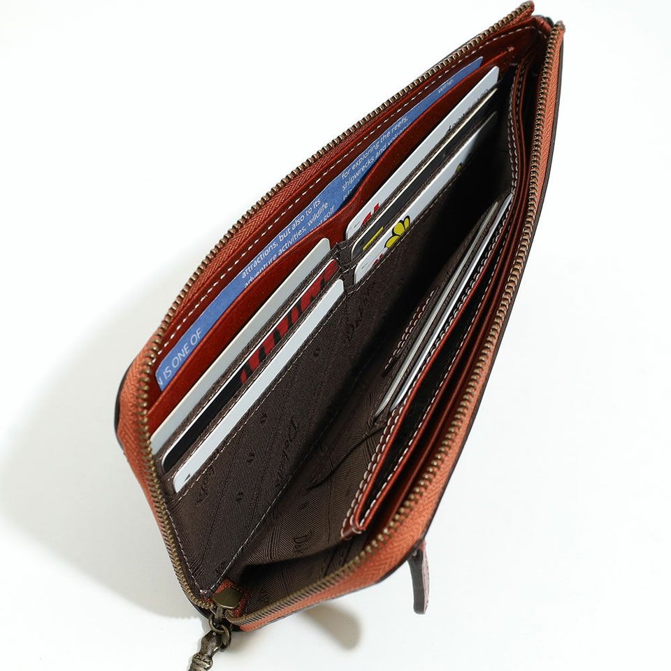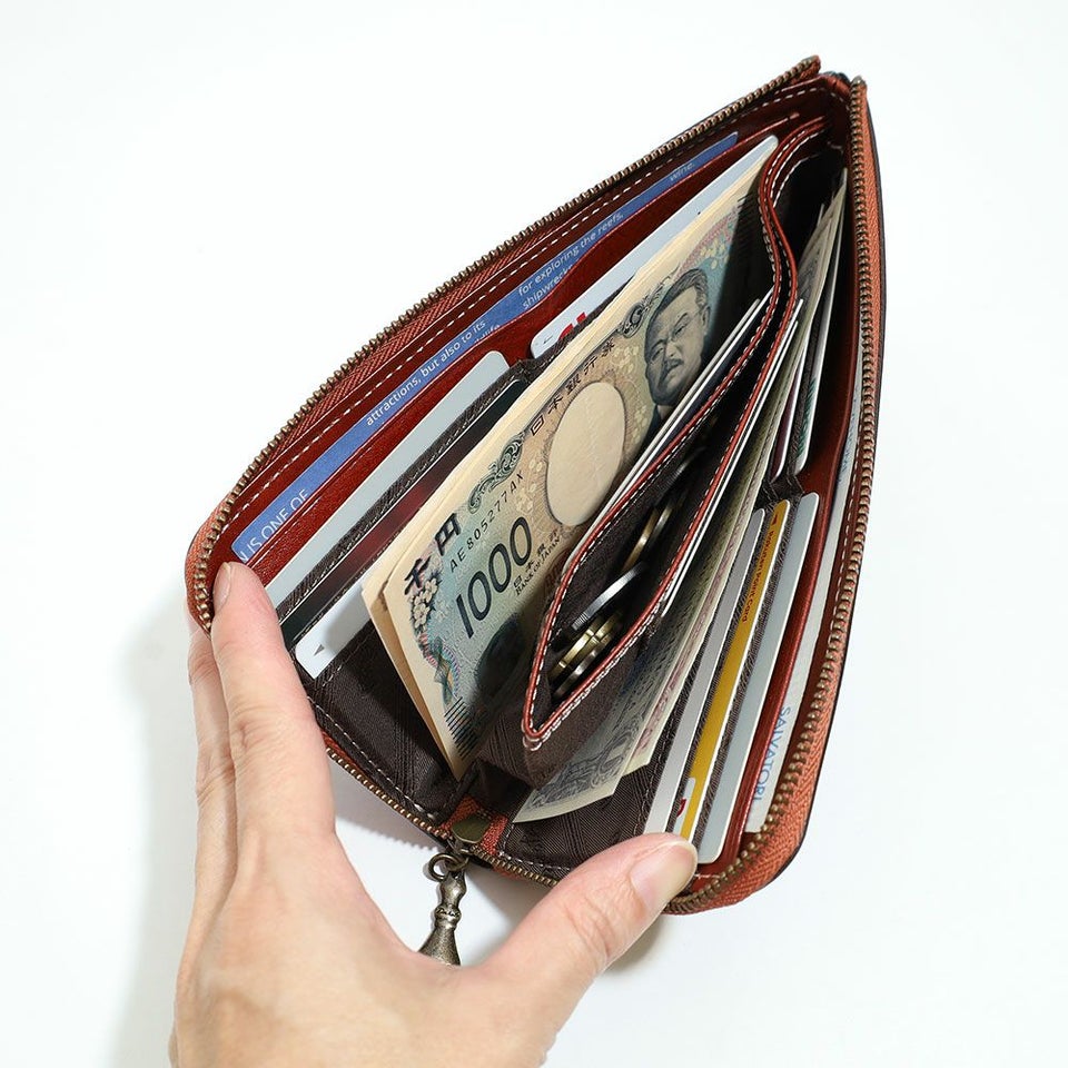 お札入れ2つ、カードポケット16個、ファスナーレス小銭入れを搭載。さらに前面オープンポケットと背面ファスナーポケット付きで、レシートや鍵などの小物も整理しやすく実用的です。