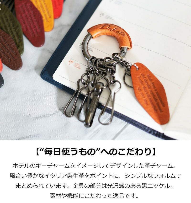 ホテルのキーチャームをイメージしてデザインされた革チャーム。