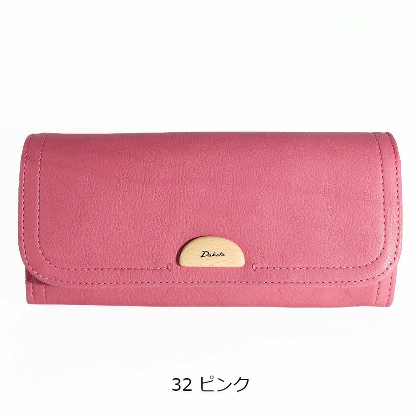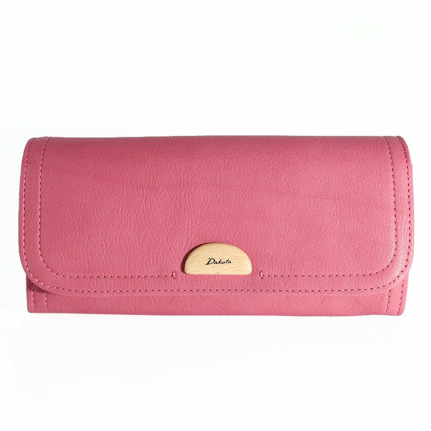 ふっくらとしたフォルムにウッドブローチがやさしい印象の長財布です。