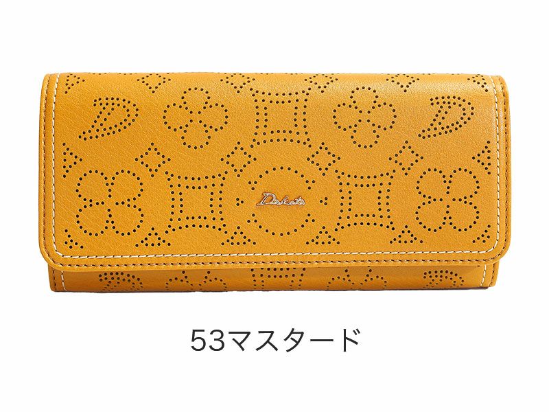 花やクローバーのモチーフを細かなパンチングで表現した、レトロで愛らしいデザインのディクラッセシリーズ。手触りの良いふっくらとした質感が魅力的です。内容量によりメイン開口部のボタンの留める位置を変更でき、札入れスペースを一つにすることで、スリムに仕上げています。カードポケットが19枚分備わっており、たっぷりと収納できます。カジュアルさの中にも品が漂う女性らしいアイテムです。