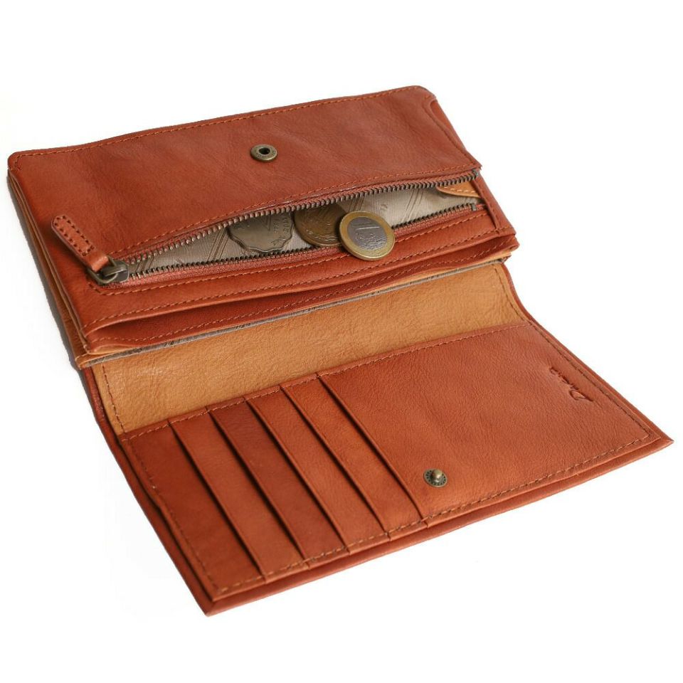 スッキリした四角いフォルムが印象的な、フラップ式長財布です。