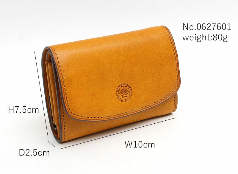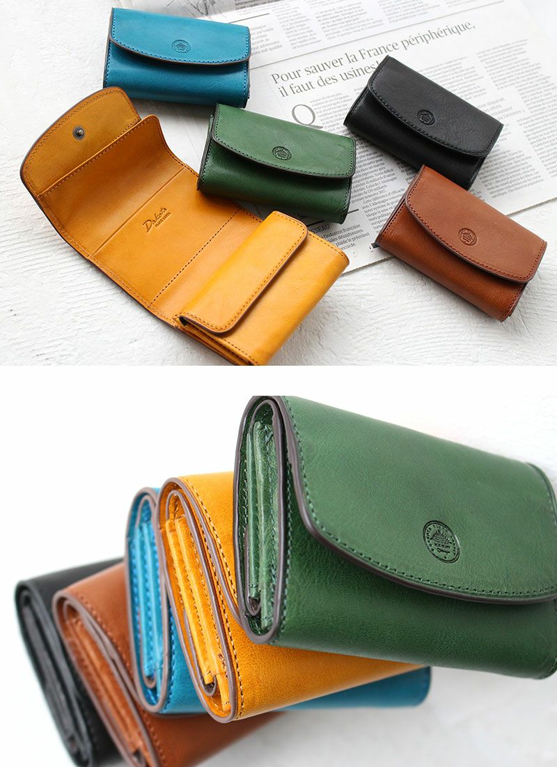 カードも小銭もたくさん持ち歩きたい方におすすめの三つ折り財布です。材料はイタリアンレザーを使用し、使うほどにエイジングを楽しめます。