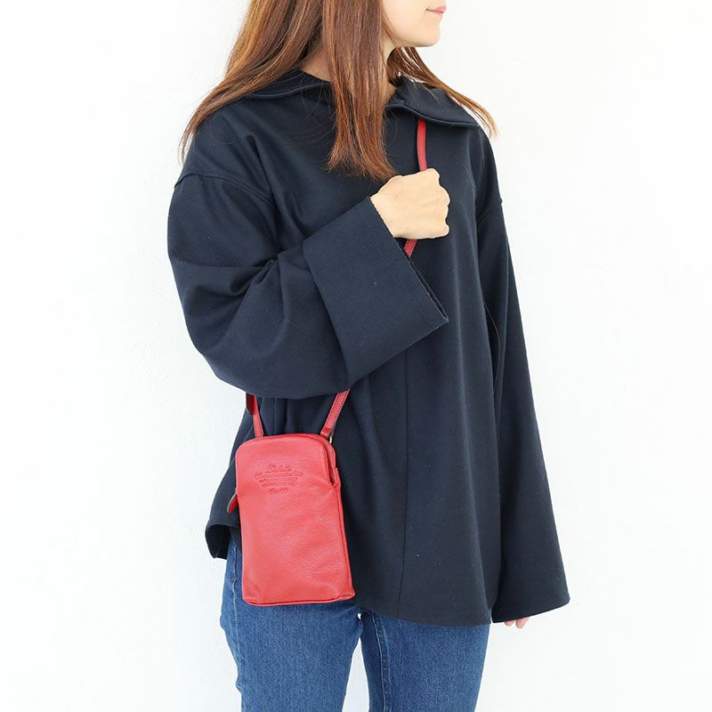 スマホとミニ財布だけ持ってお出かけしたい時のお供に最適な縦型ミニポシェットです。