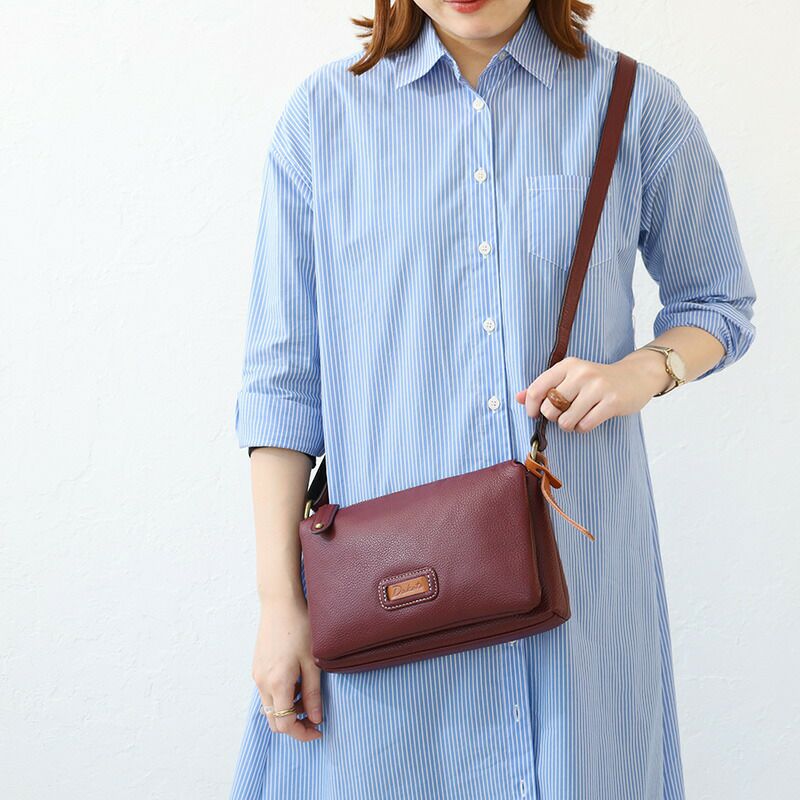 柔らかなシュリンクレザーを使用し、ふっくらとした素材感を活かしたシンプルなレザーバッグです。