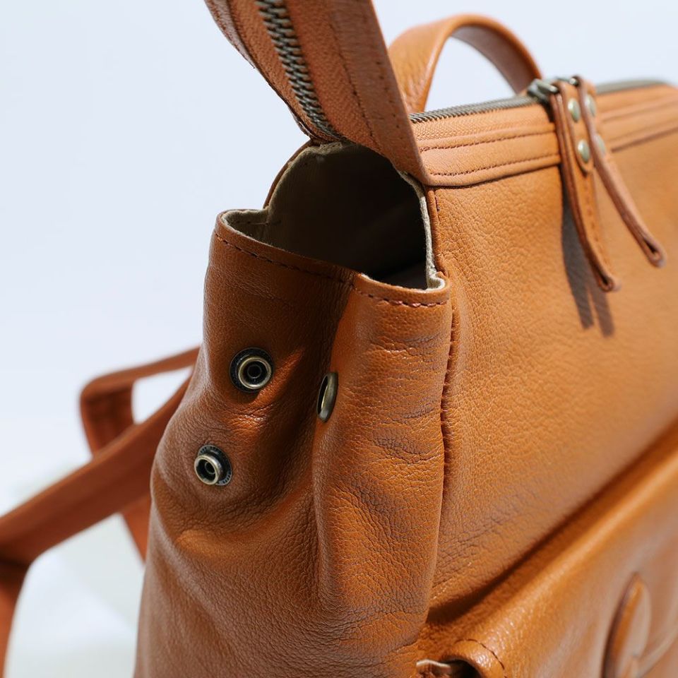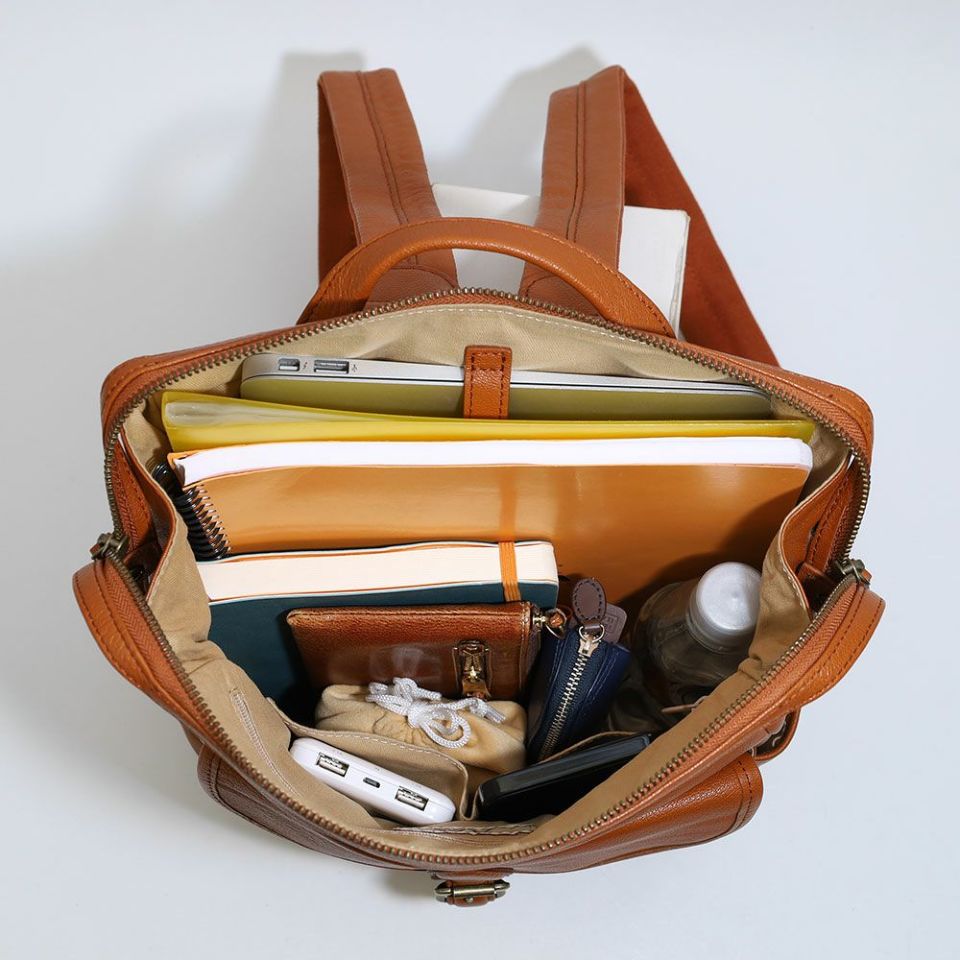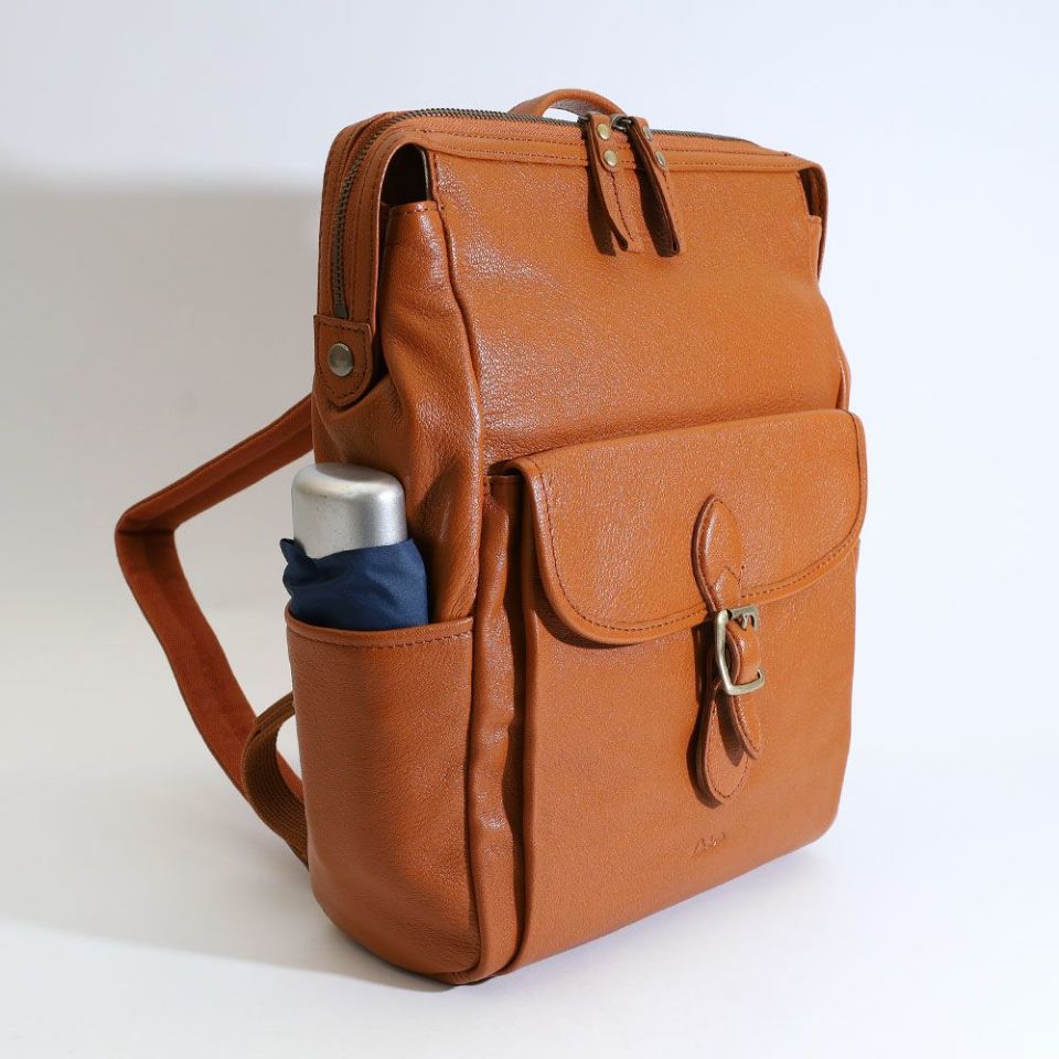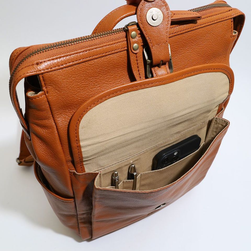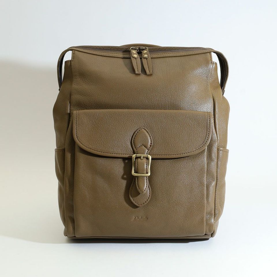 細やかなシボが美しいやぎ革を使用し、リュックにありがちなカジュアルすぎる印象を払拭。落ち着いた質感と上品なツヤが、大人の日常にぴったりの洗練されたスタイルを演出します。