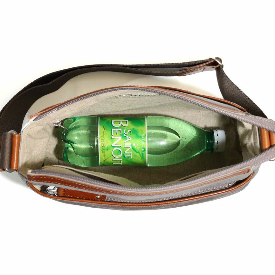 コンパクトなサイズ感ですが、マチがしっかり設けられており、長財布やペットボトルを楽に収納できます。