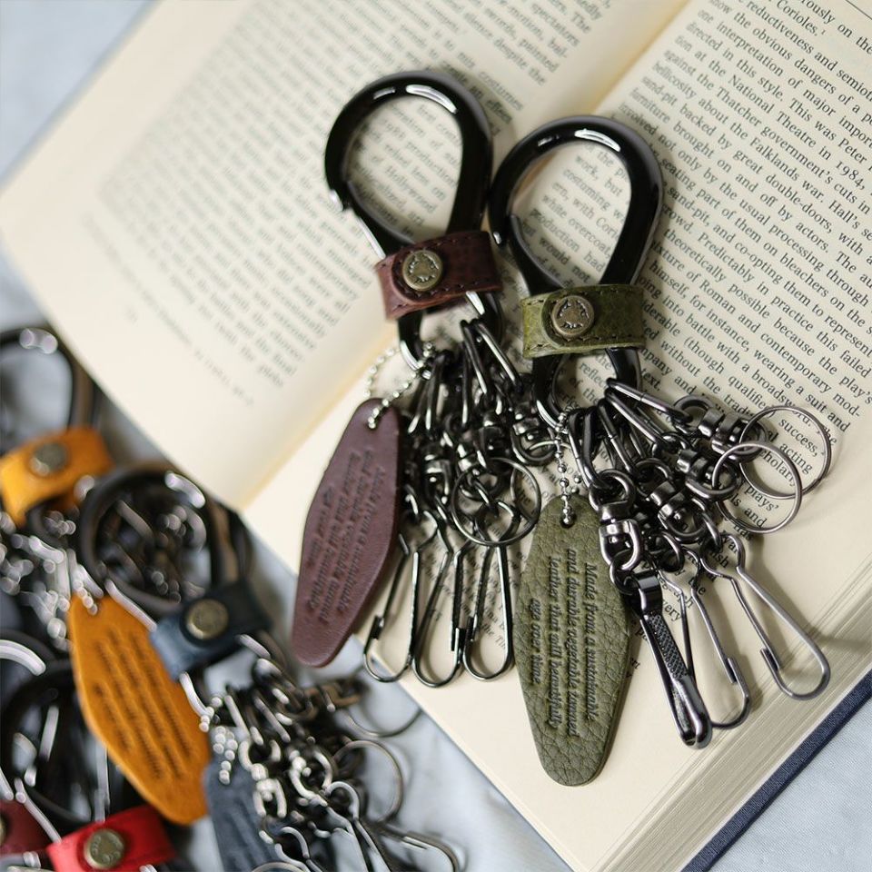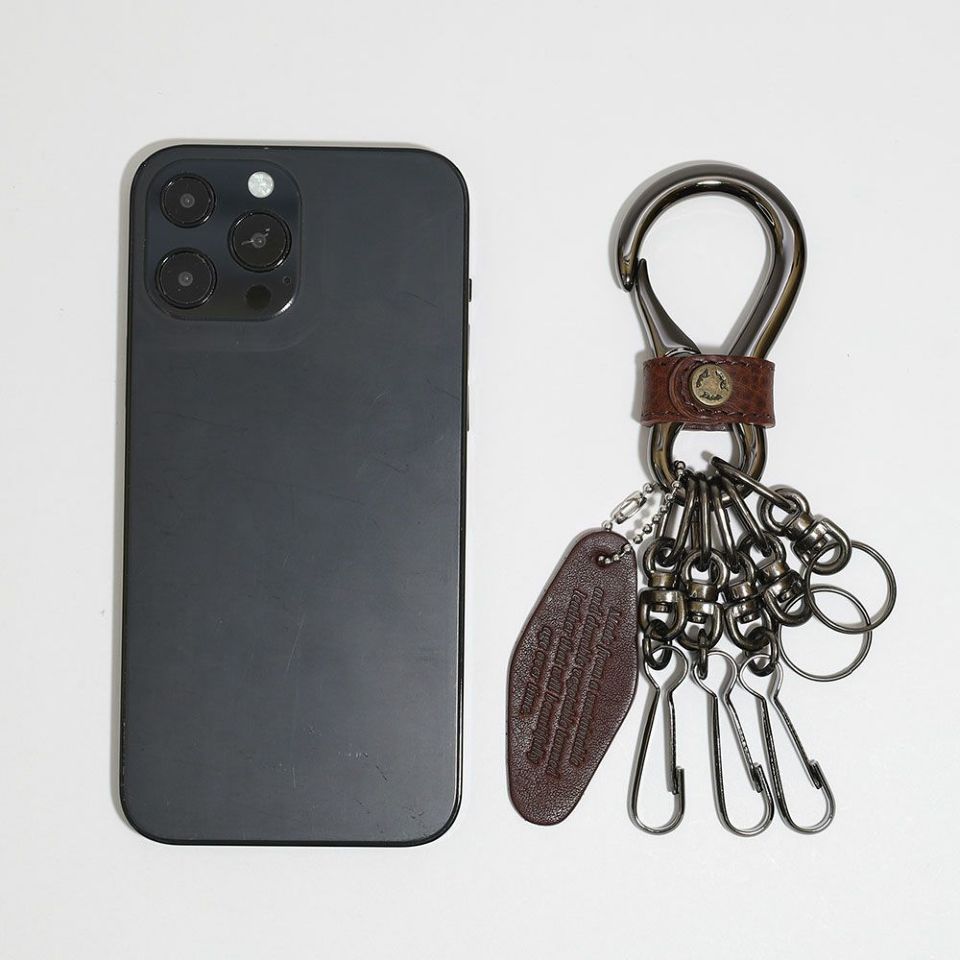 異なる2種の形状の5つのキーフックで、鍵を種類別に整理可能。ナスカン付きでバッグやベルトに簡単に装着でき、使い勝手も抜群です。