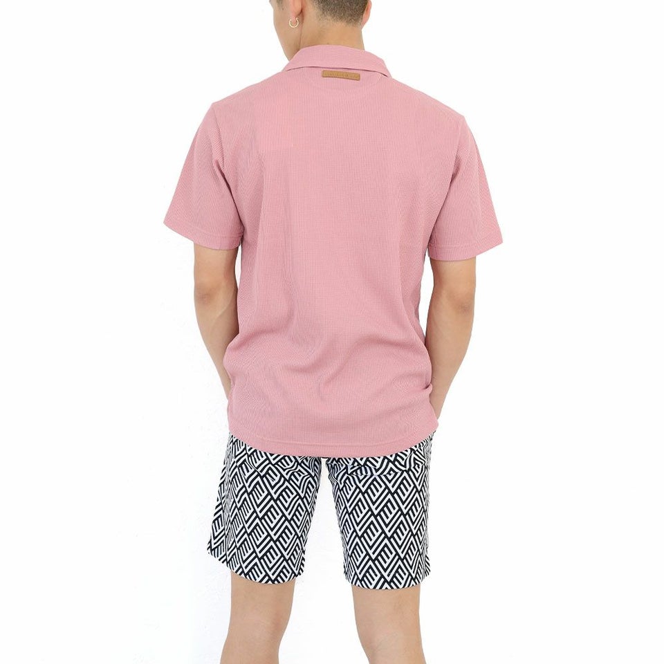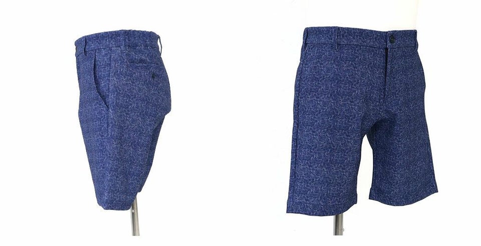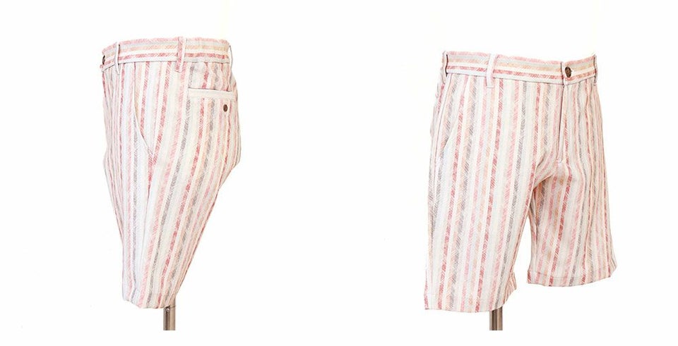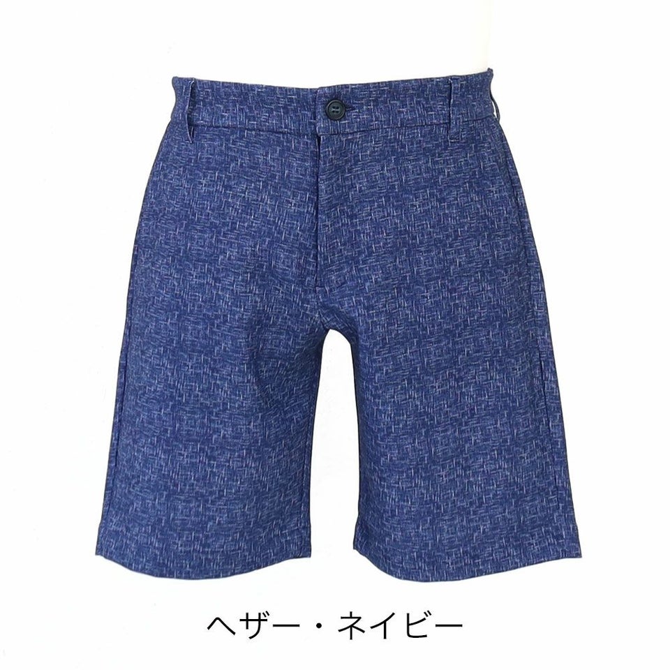 ストレッチ性に富んだ、麻のような風合いのポリエステル吸水速乾素材のショートパンツ