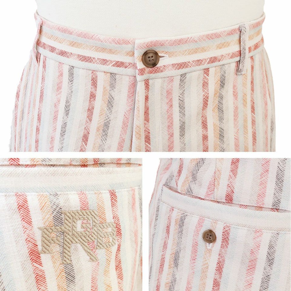 大人のリラックス感を漂わせる、魅力的なプリント、色合いが特徴で、丈感や裾幅なども微妙なサイズ調節をして、シルエットもきれいに仕上げております。 ヒップポケット部分にマット糸で表現したロゴ刺繍がワンポイントになっております ウエスト両サイドに、生地の内側見えない部分にゴムを入れ、ウエスト周りがラクな仕様になります。