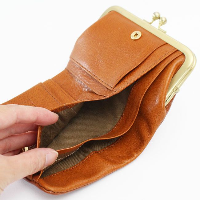 がま口の口金は大きく開き、また片手で開け閉めが出来る為 小銭の出し入れがとてもスムーズにできます。