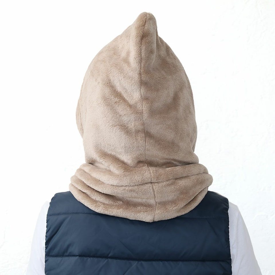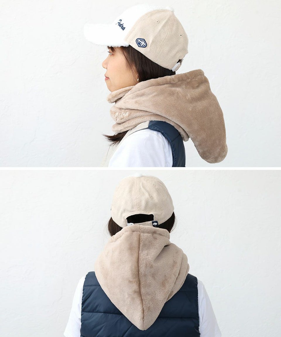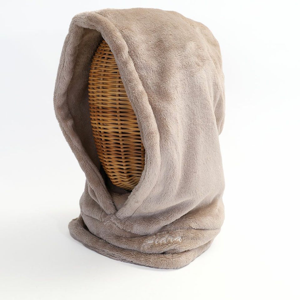 ふんわりとブランケットに包み込まれるようなネックフーディーです。