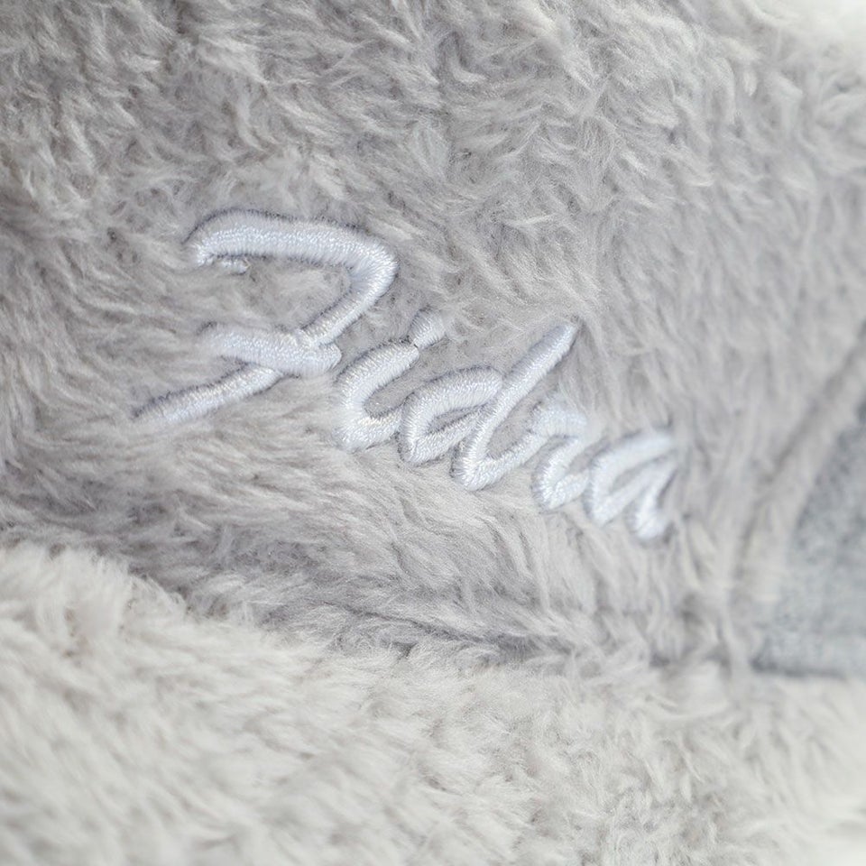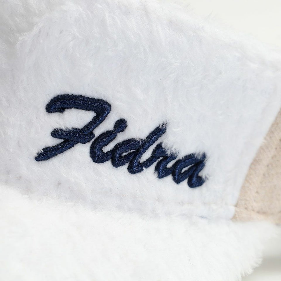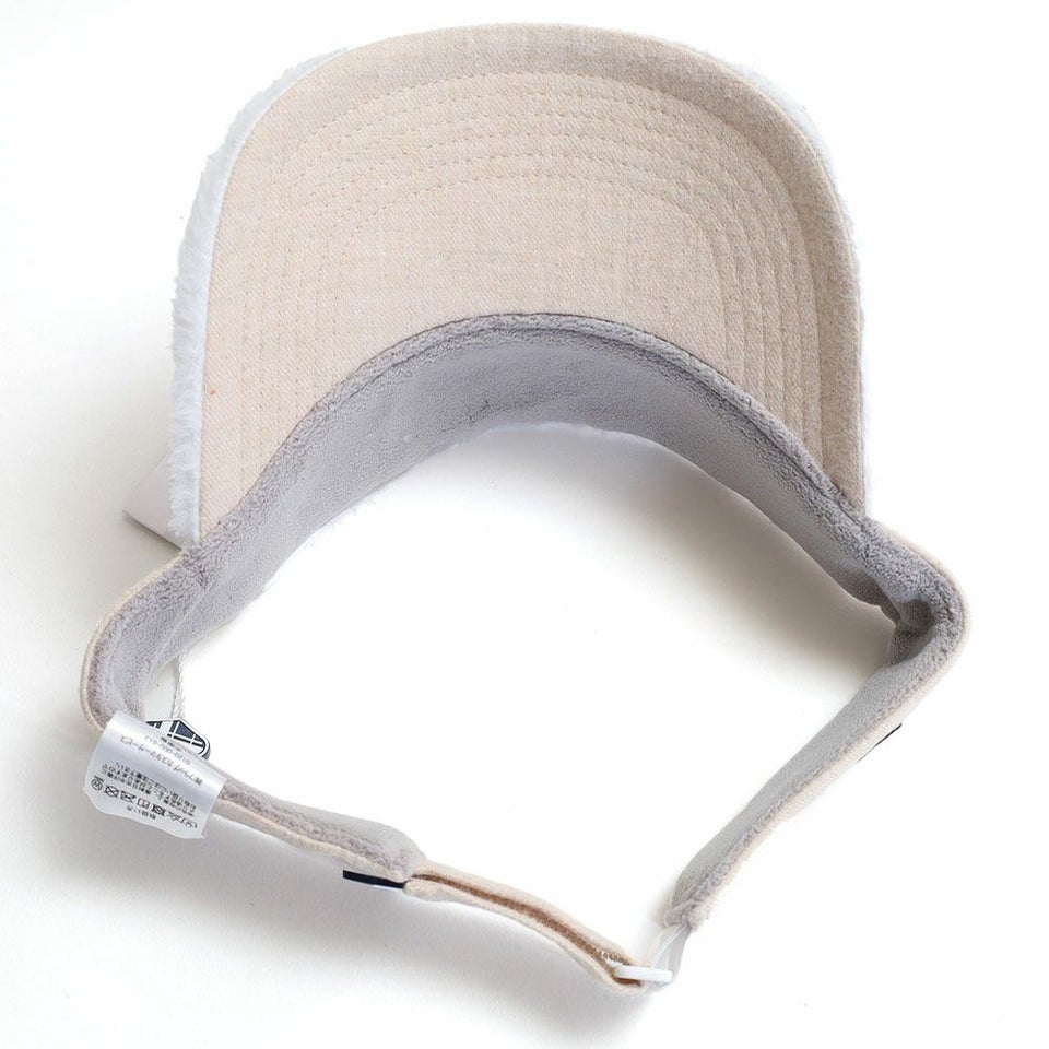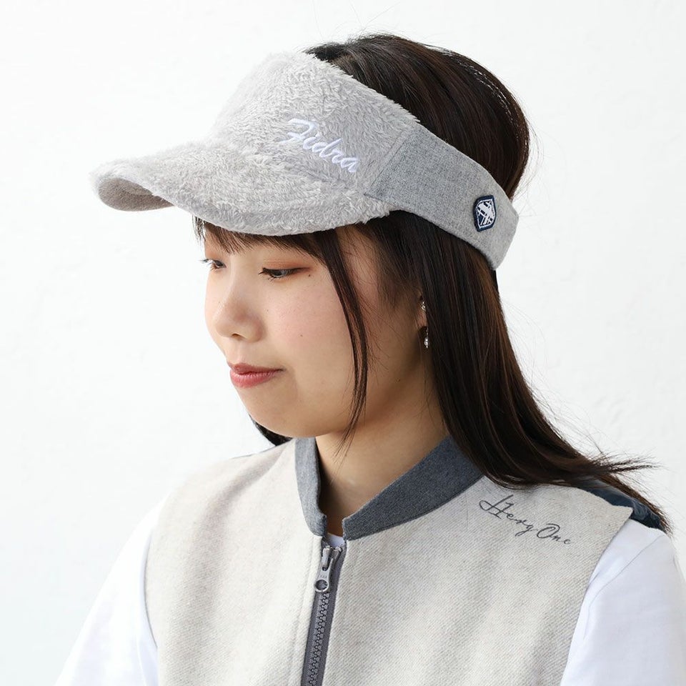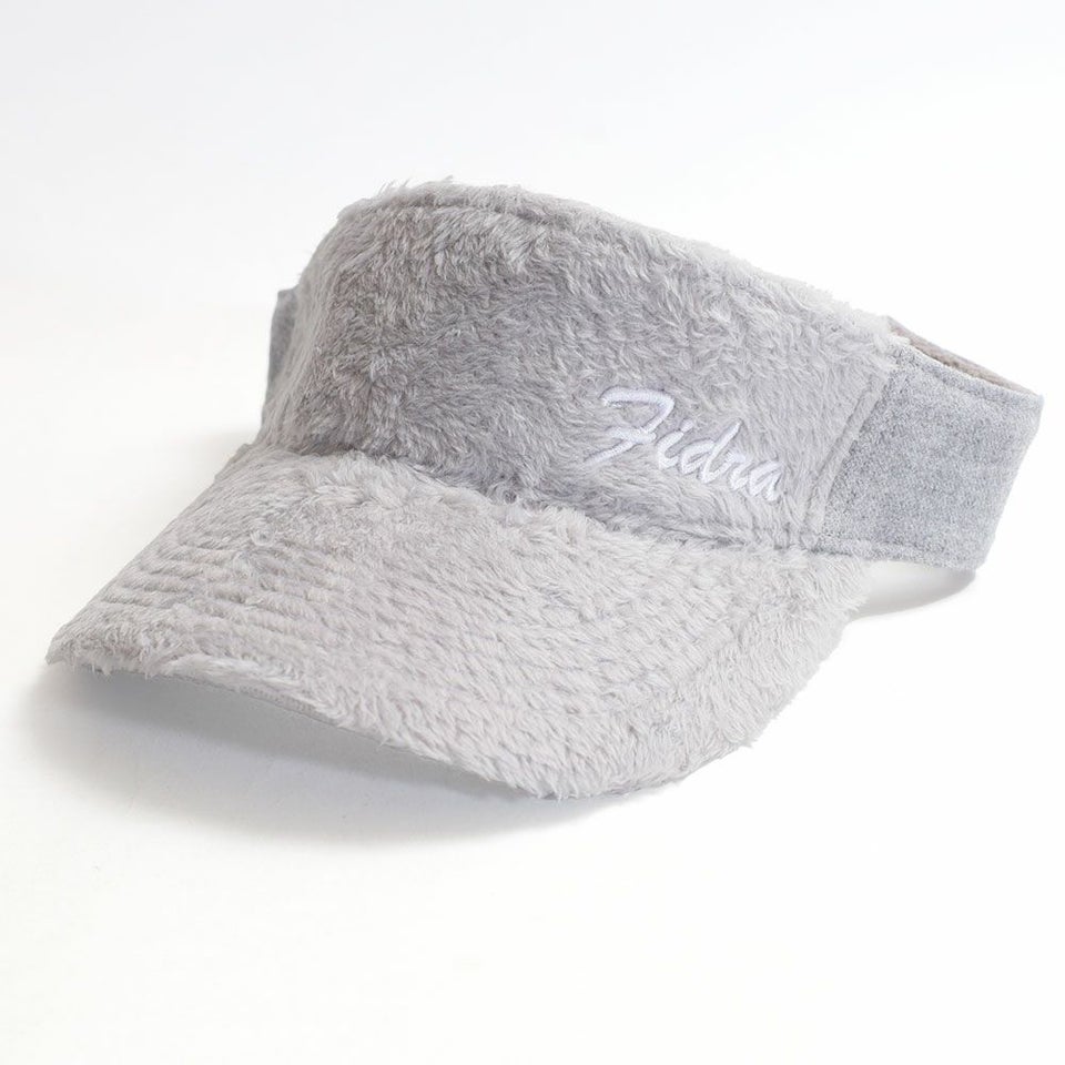 ファー×フリースで温かく肌あたりの良いバイザーです。毛足の長いファー生地のふわっとした起毛が秋冬らしいアイテムです。筆記体ロゴもスタイリッシュなワンポイントに。頭まわりは細かくサイズ調節可能なマジックテープ付です。