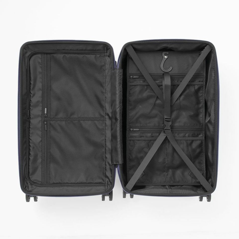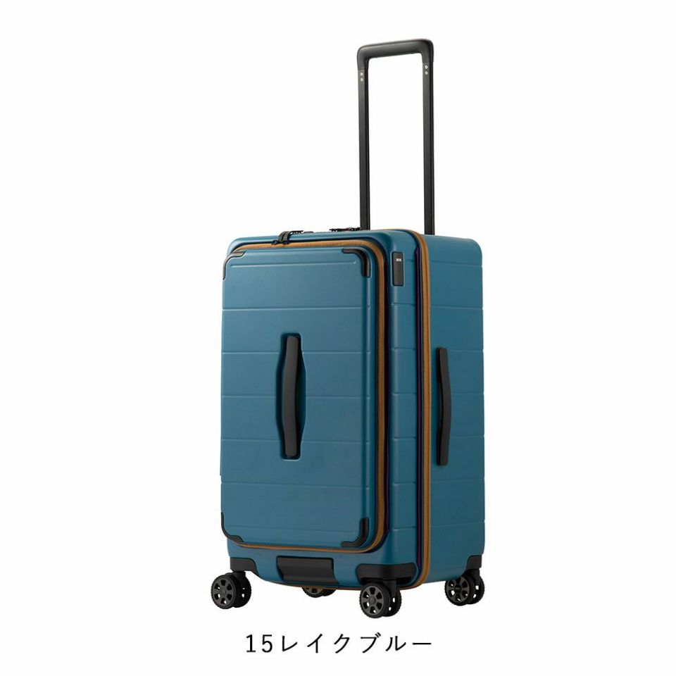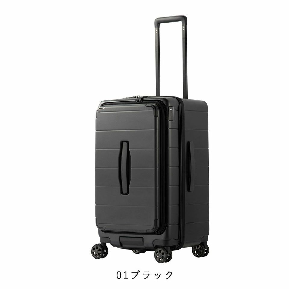 通常のスーツケースの様に50:50にパッキング出来るだけでなく、フロントポケットを開閉し、1気室のケースとして使用することも可能。
