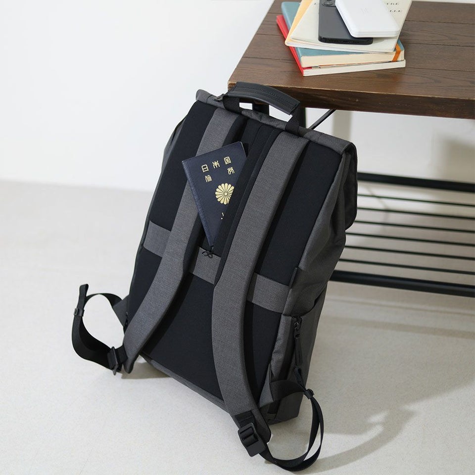 背面には貴重品を守る隠しポケットを搭載。パスポートや現金などを安全に収納でき、都市での移動も安心です。